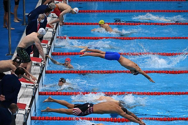 On being told of Peaty’s split time, Dressel was taken aback and said: ‘Yeah, that’s pretty good!’