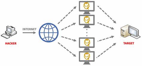 In a denial-of-service attack, the attacker hijacks the computers of other users by spreading malware. On command, the resulting “botnet” bombards a remote server computer with requests for information, overloading it.