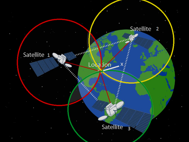 . Signals from three satellites reveal GPS user’s location on Earth’s surface – four signals reveal altitude as well