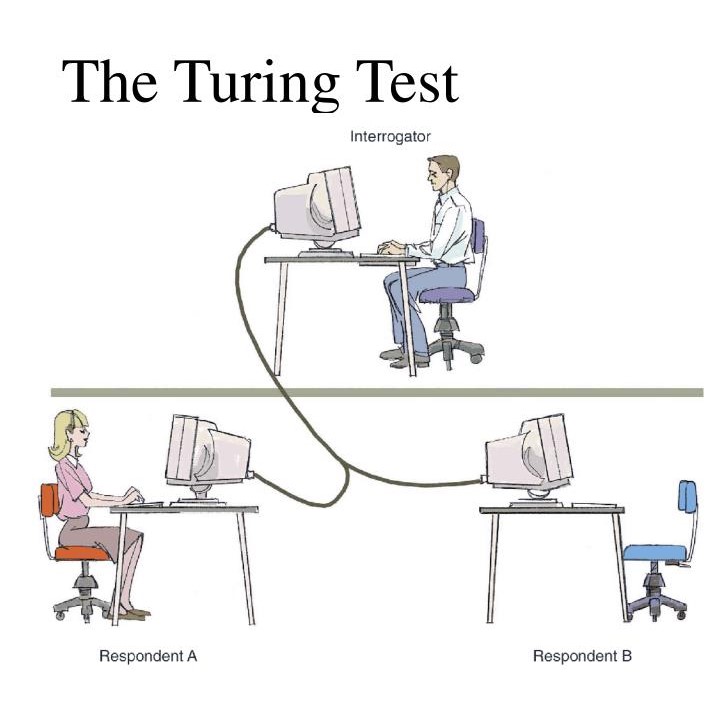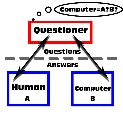 Turing proposed an experiment in which a volunteer sits with an experiment manager behind a screen. On the other side, out of sight, a second volunteer asks questions. The first volunteer and a computer both answer with text messages, and the manager decides at random which of the two responses the questioner will receive. If the questioner can’t distinguish the human responses from the computer ones, the computer has achieved human intelligence.